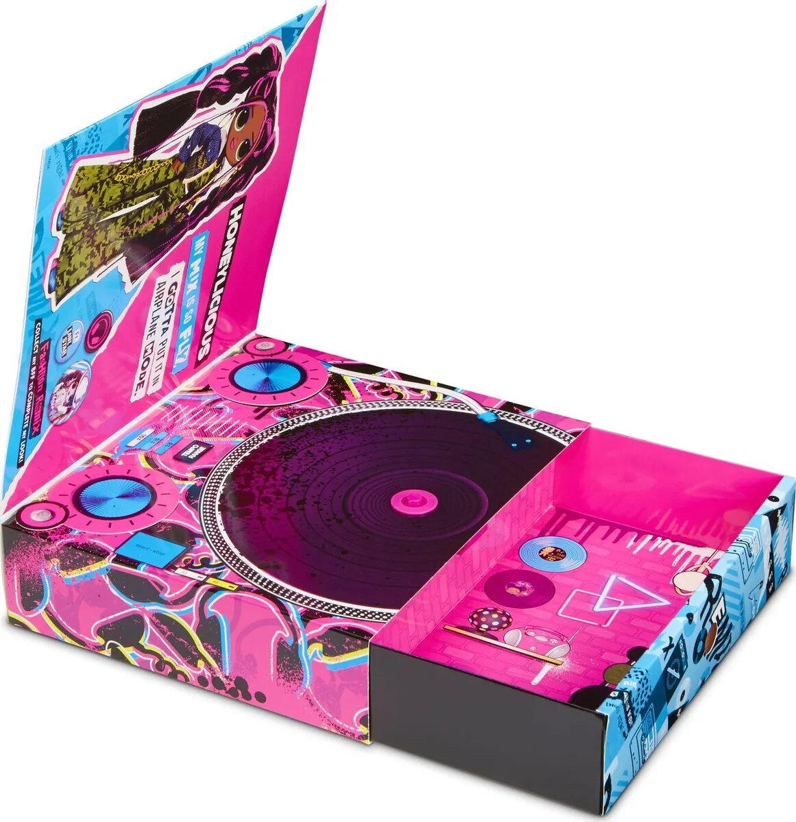 LOL Surprise Remix – это музыкальная группа из стильных куколок! Модная Honeylicious одета в крутые брюки палаццо и джинсовую куртку — интересный образ для диджея! Еще один сюрприз в коробочке!. Распаковывая упаковку, вы найдете музыкальную пластинку, вставьте ее и вы услышите куплет из песни “Crew” в исполнении вашей куколки.