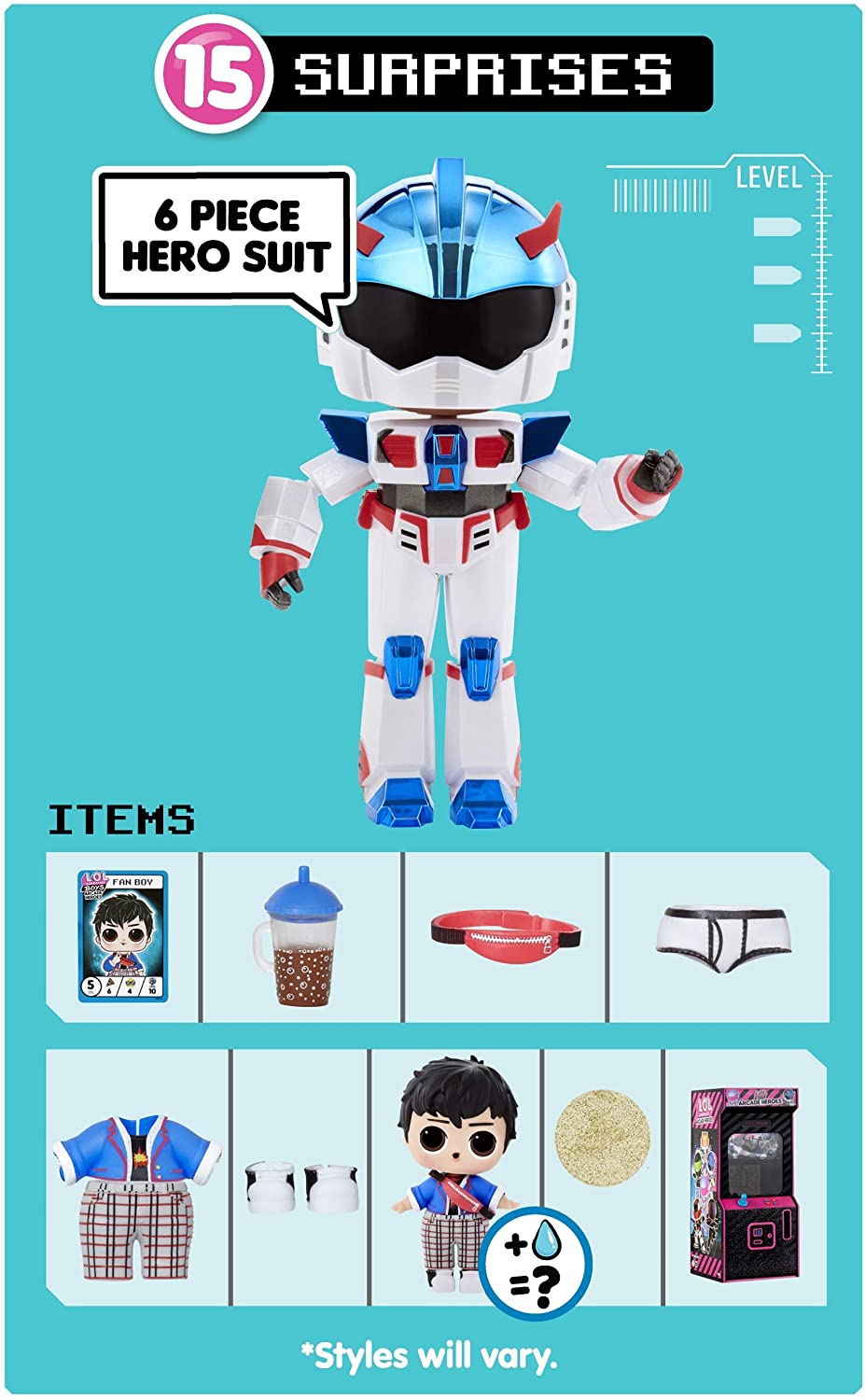 LOL Surprise Boys Arcade Heroes — увлекательная серия мальчиков-героев LOL с 15 сюрпризами. Внутри игрового автомата ты найдешь одного из шести персонажей, среди которых может попасться ультра-редкая сестрёнка LOL.
