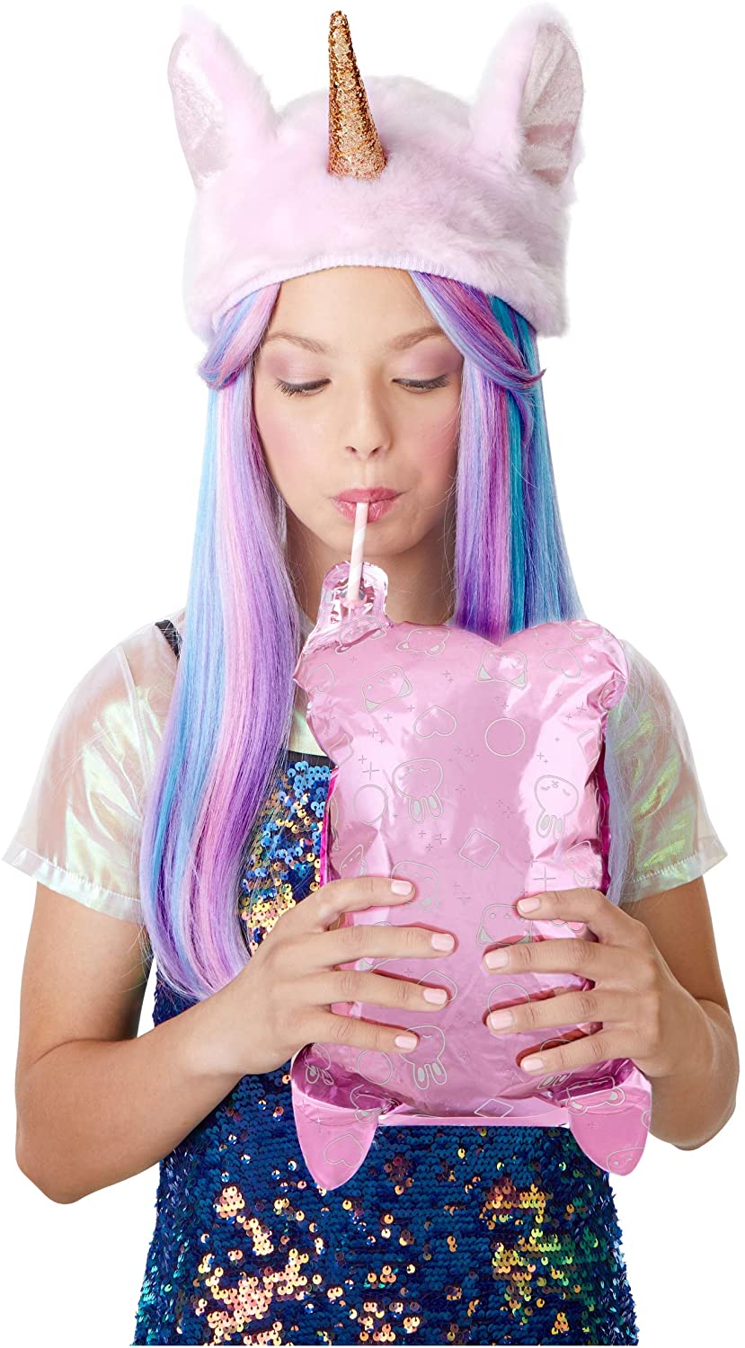 Чтобы открыть коробочку, нужно нажать на заячьи ушки. В 4 серии Na! Na! Na! Surprise бокс представлен в спокойном сиреневом цвете. Также прилагается бумажная трубочка, которую необходимо вставить в специальное отверстие и надуть пакет.