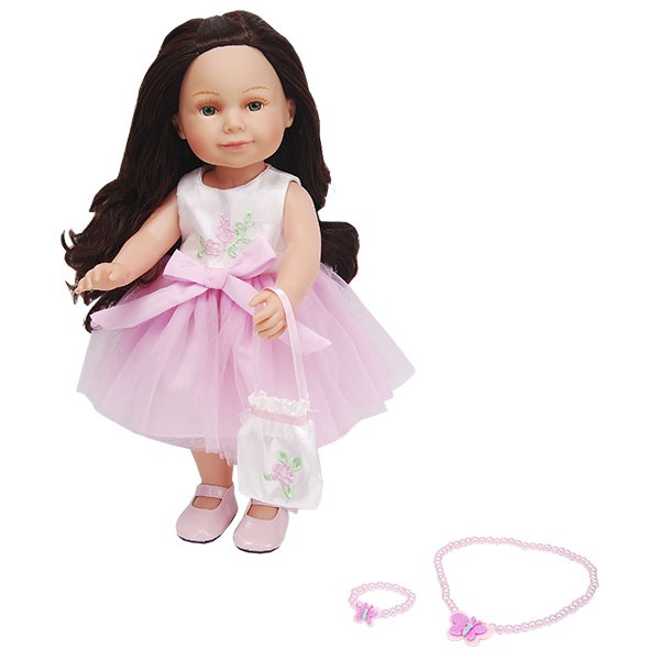 Также в комплект входят аксессуары: сумочка, браслет и кулон из бусинок.