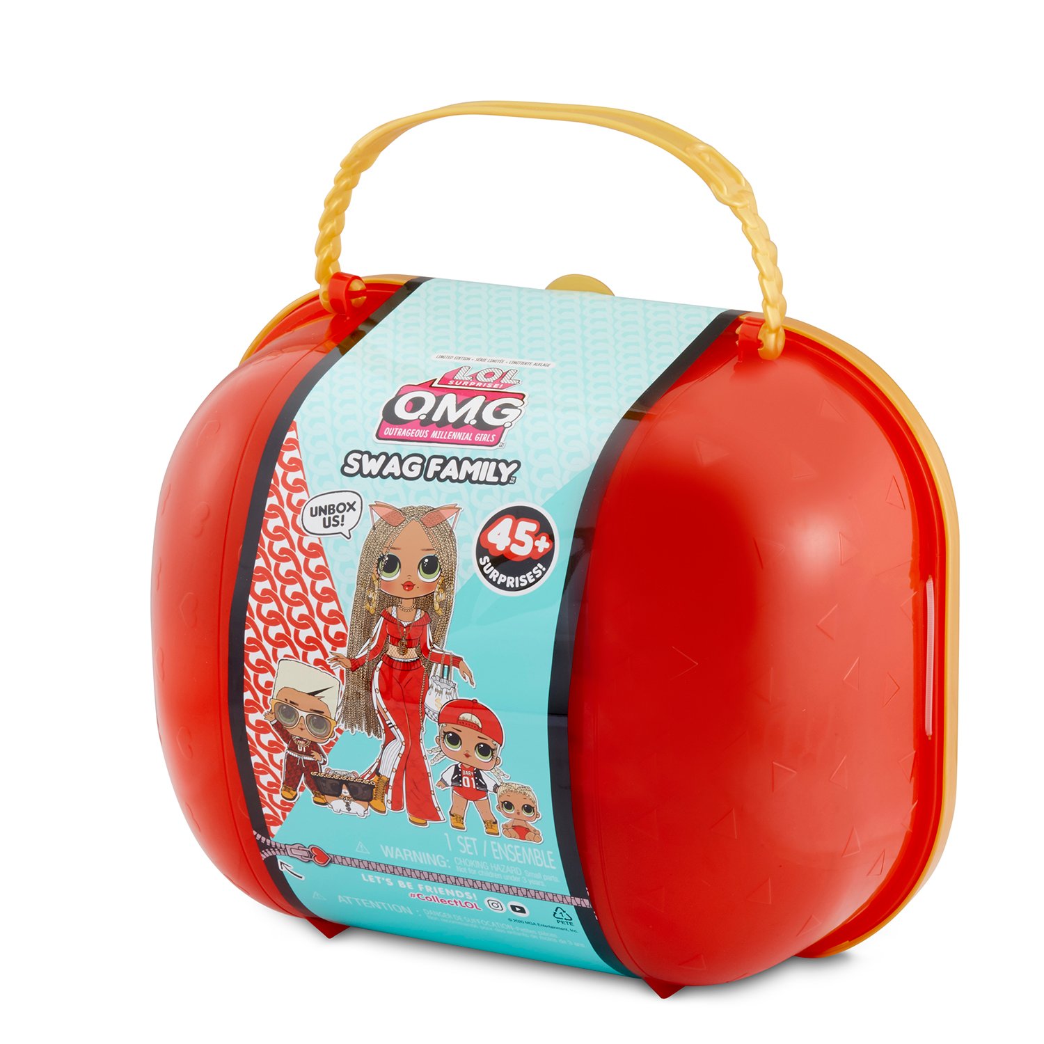 Ребенку понравится огромный чемодан с полным семейством кукол LOL OMG Swag Family. Внутри набора вы найдете 45 сюрпризов.