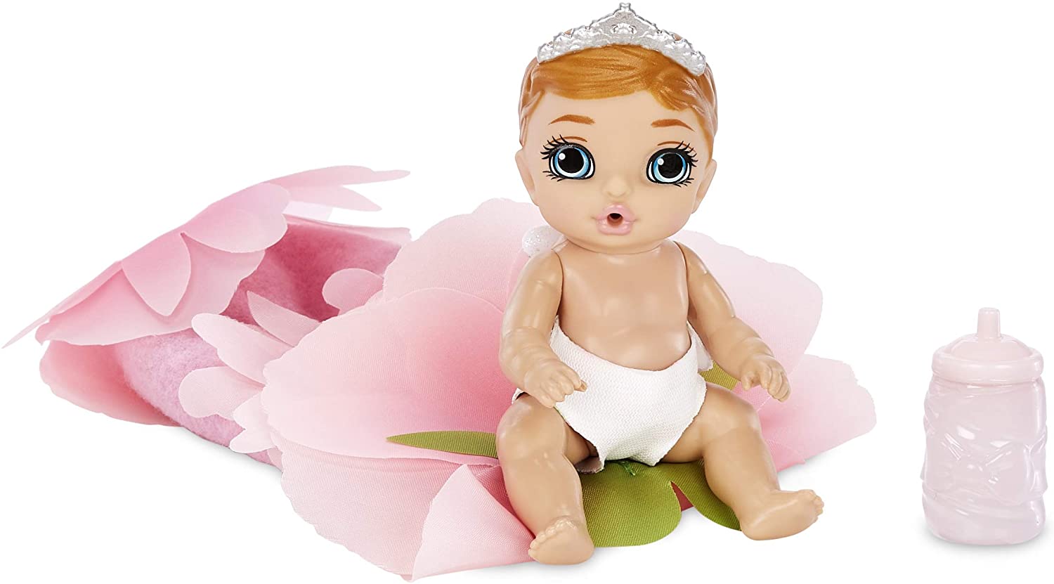 В цветочной серии 12 пупсов: мальчики и девочки. Узнать пол куколки можно по цвету бутылочки — голубая или розовая. А еще у игрушек уникальный цвет глаз и аксессуары. У некоторых в наборе цветочные шапочки, диадемы или крылышки на спине.