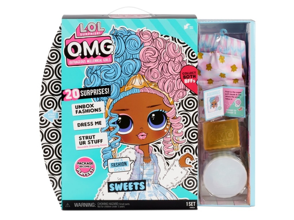 Sweets – куколка 4 серии OMG и старшая сестра малышки Sugar. Игрушка с необычным стилем в своем образе сочетает меховые элементы, рюши и нежную пастельную цветовую гамму. Ее образ напоминает сладкую вату или зефир.