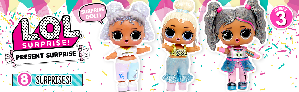 Серия LOL Surprise Present Surprise, 3 серия - это 12 симпатичных куколок, соответствующих месяцу рождения игрушки. Куколки с пластиковыми волосами умеют плакать, брызгаться, писать и изменять цвет в воде.