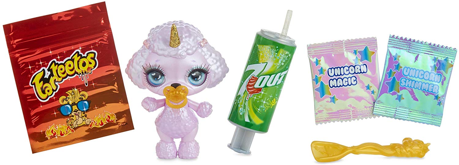В отличии от «классической» линейки единорогов, новая серия от MGA может не только «какать» слаймами, но и плеваться ими. Чтобы уникализировать лизун, ребенок может изменить его цвет или украсить блестками из набора. Просто напоите и встряхните игрушечного персонажа. Набор-сюрприз «Пупси Спаркли Криттерс» подходит для детей от шести лет и гарантированно станет приятным сюрпризом!