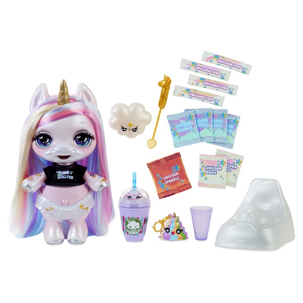 «Poopsie Surprise Unicorn» от MGA Entertainment – игровой набор-сюрприз, который сочетает в себе более двадцати различных сюрпризов для ребенка. В подарке может попасться два вида игрушек - Oopsie Starlight (розоволосый единорог) или Rainbow Brightstar (пони с радужными прядями). Определить, какая игрушка в наборе, можно только после его открытия – это сохраняет интригу.