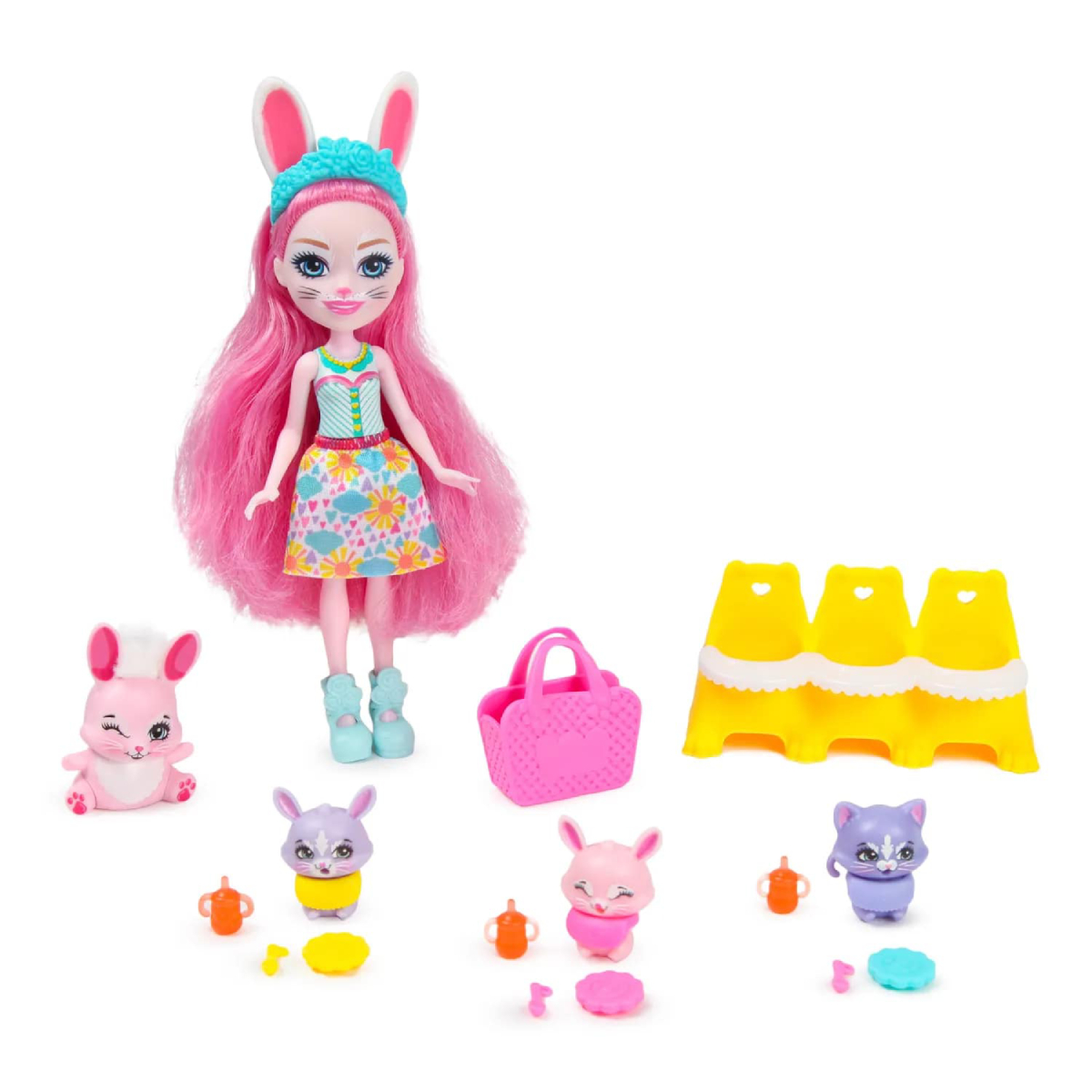 Детский набор фигурок куколок идеально подходит для игр в дороге или дома, позволяя детям воображать себя частью волшебного мира Энчималс. Enchantimals — это компания очаровательных девочек, имеющих особую связь со своими лучшими друзьями-зверятами. Данный игровой набор с аксессуарами для девочки, включает в себя очаровательных Бри Бани и ее питомцев. различные элементы, предназначенные для создания захватывающих сценариев и развития фантазии.