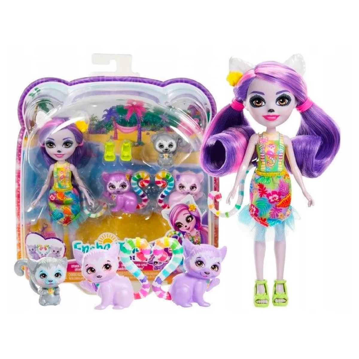 Enchantimals — это компания очаровательных девочек, имеющих особую связь со своими лучшими друзьями-зверятами. Данный игровой набор с аксессуарами для девочки, включает в себя очаровательное Семейство Лоринда Лемур и три лемура , а так же различные элементы, предназначенные для создания захватывающих сценариев и развития фантазии.
