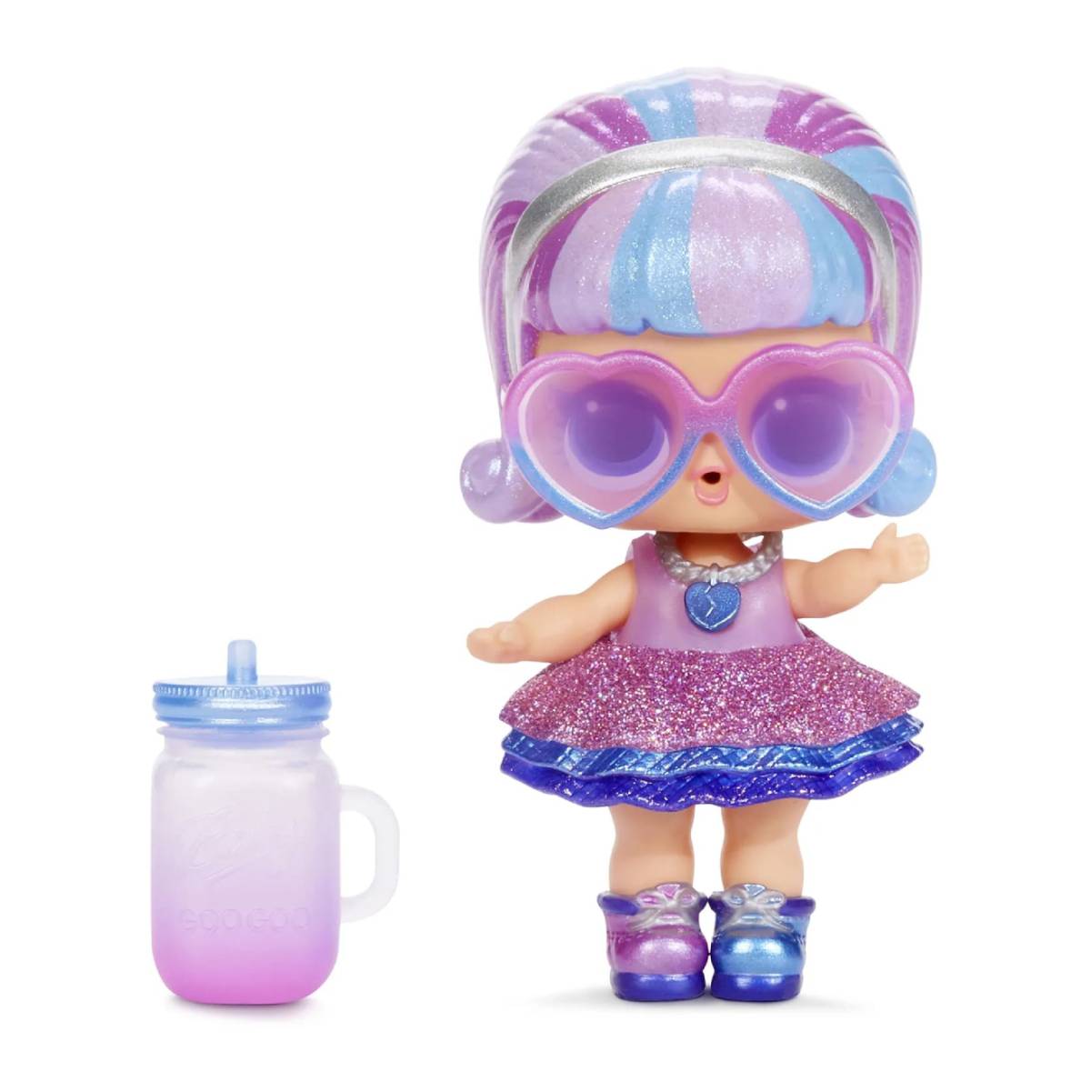 Как всегда, кукла Лол – с подвижными ручками и ножками, умеет пить из своей бутылочки и меняет цвет в воде.