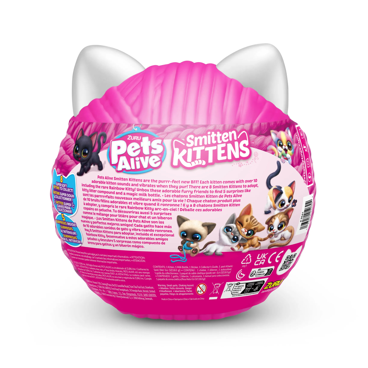 Коллекция состоит из 8 котят. Они такие милые, что вы не сможете устоять перед их обаянием. Игрушки издают 10 реальных звуков. Smitten Kitten — идеальный подарок для любого ребёнка, мечтающего завести питомца. Игрушка научит детей заботиться и правильно обращаться с настоящими животными.