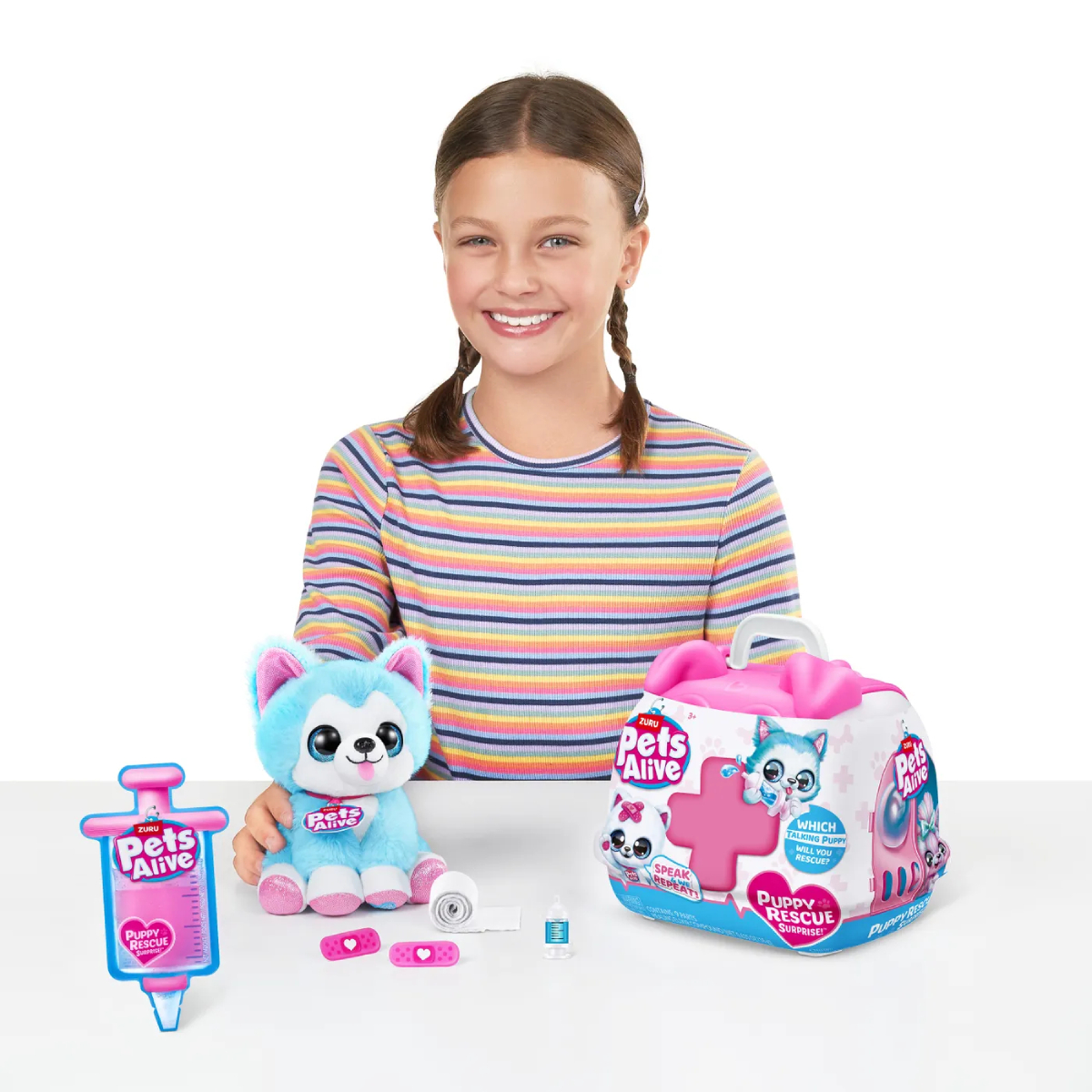 В коллекции 6 очаровательных щенков. В наборе для лечения есть бинты, пластыри и многое другое! Используйте переноску для животных, чтобы взять своего пушистого друга с собой в поездку. Puppy Rescue Surprise — идеальный подарок для любого ребёнка, мечтающего завести собаку. Помогает развивать мышление и речь ребёнка. Игрушка научит детей заботиться и правильно обращаться с настоящими животными.