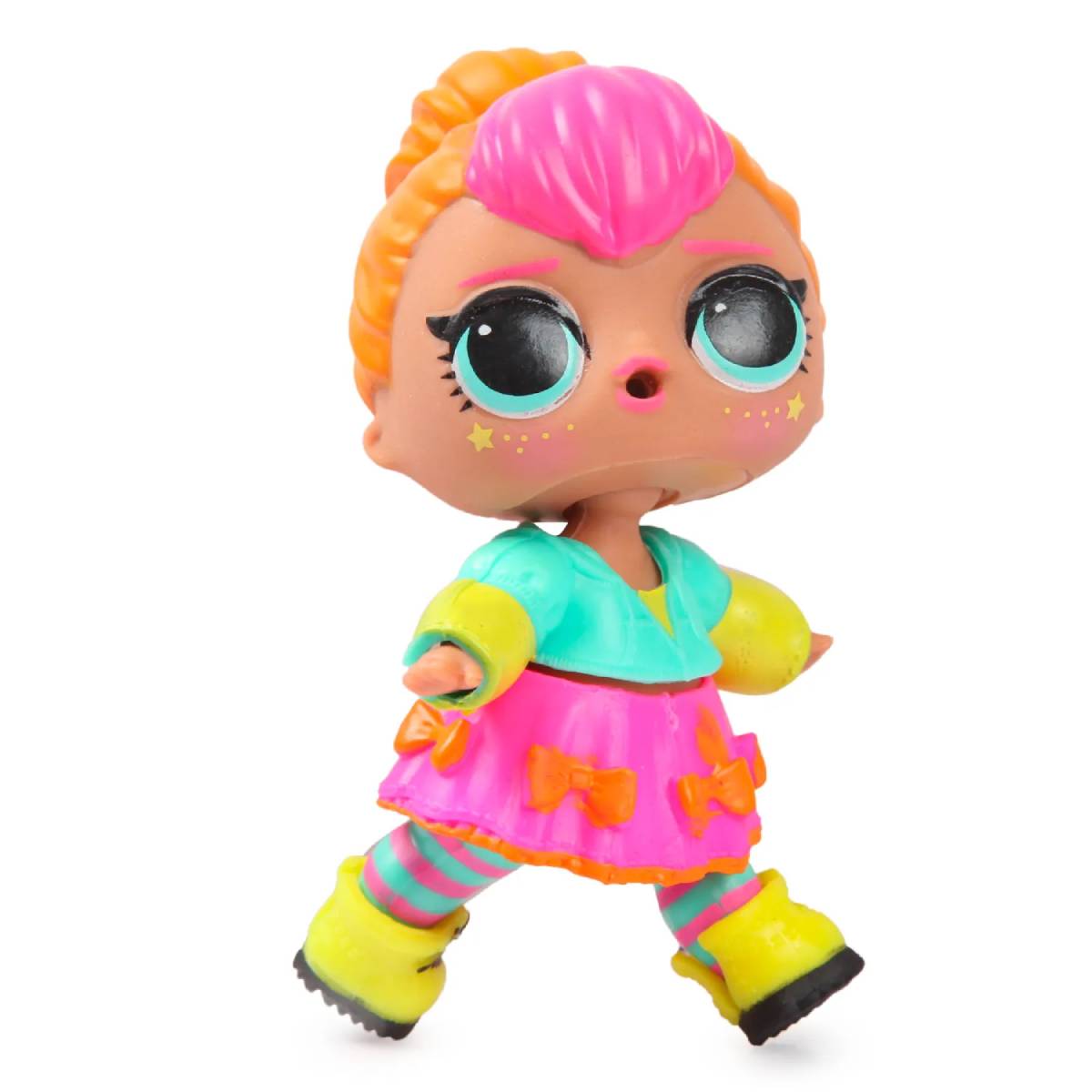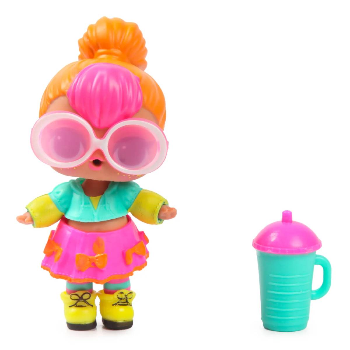 Кукла Neon Q.T. – королева вечеринок. Её неоновый наряд поражает и восхищает. Откройте новую экологичную упаковку-шар, чтобы найти все сюрпризы. Вас ждут 7 сюрпризов, включая одежду и аксессуары, а также секретное послание. «Водный сюрприз»: напоите куклу водой из её бутылочки, чтобы увидеть, что она умеет делать. Соберите все 4 новые куклы LOL Surprise 707: M.C. Swag, Queen Bee, Neon QT и Diva!