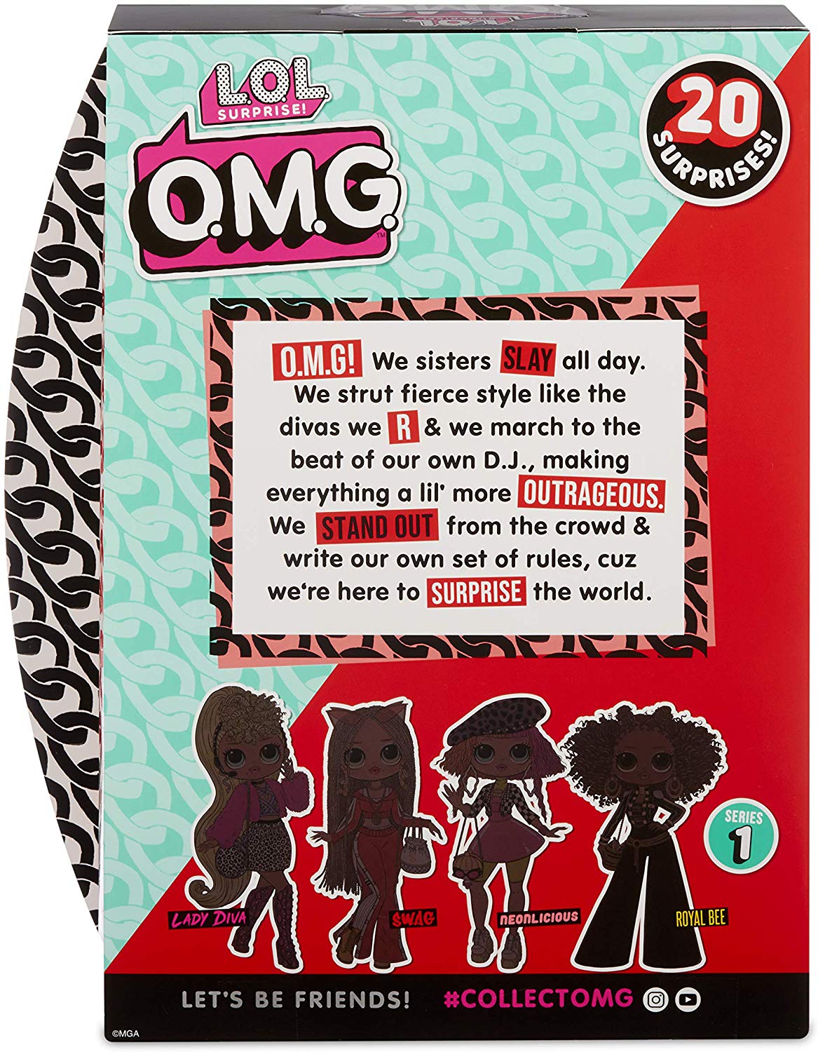 Фэшн-куклы LOL Surprise OMG от американской компании MGA Entertainment выделяются среди других своим нестандартным дизайном. Всего в серию вошли четыре персонажа – это Lady Diva, Royal Bee, Swag и Neonlicious.