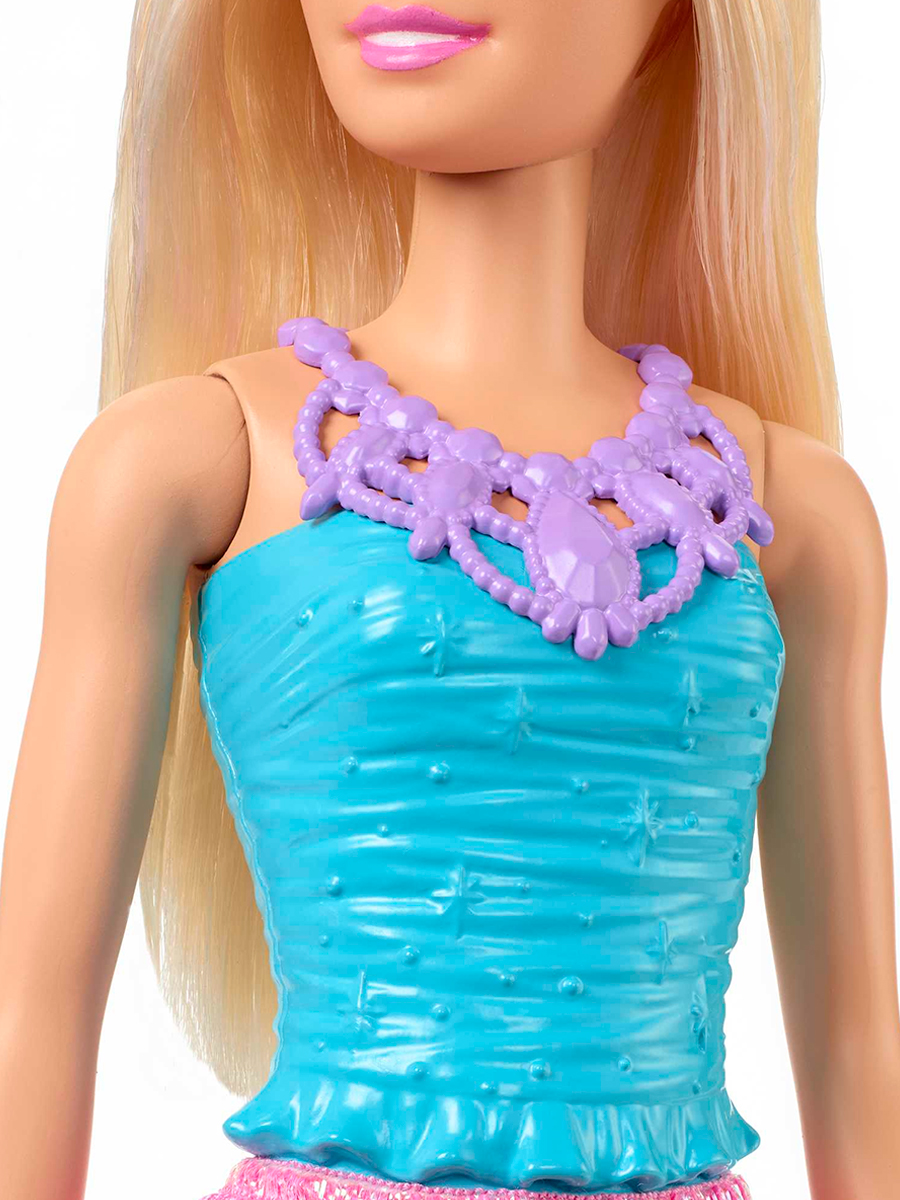 Куклы-принцессы от Barbie Dreamtopia воплощают в жизнь сказочные мечты! Эта кукла-принцесса Барби одета в сиреневый лиф со звездами, ожерелье с драгоценными камнями и атласную голубую юбку. Кукла принцесса Барби носит съемную голубую тиару, а туфли с бантиками завершают ее образ. Эта кукла-принцесса Барби Dreamtopia вдохновляет детей на бесконечное повествование сказок!