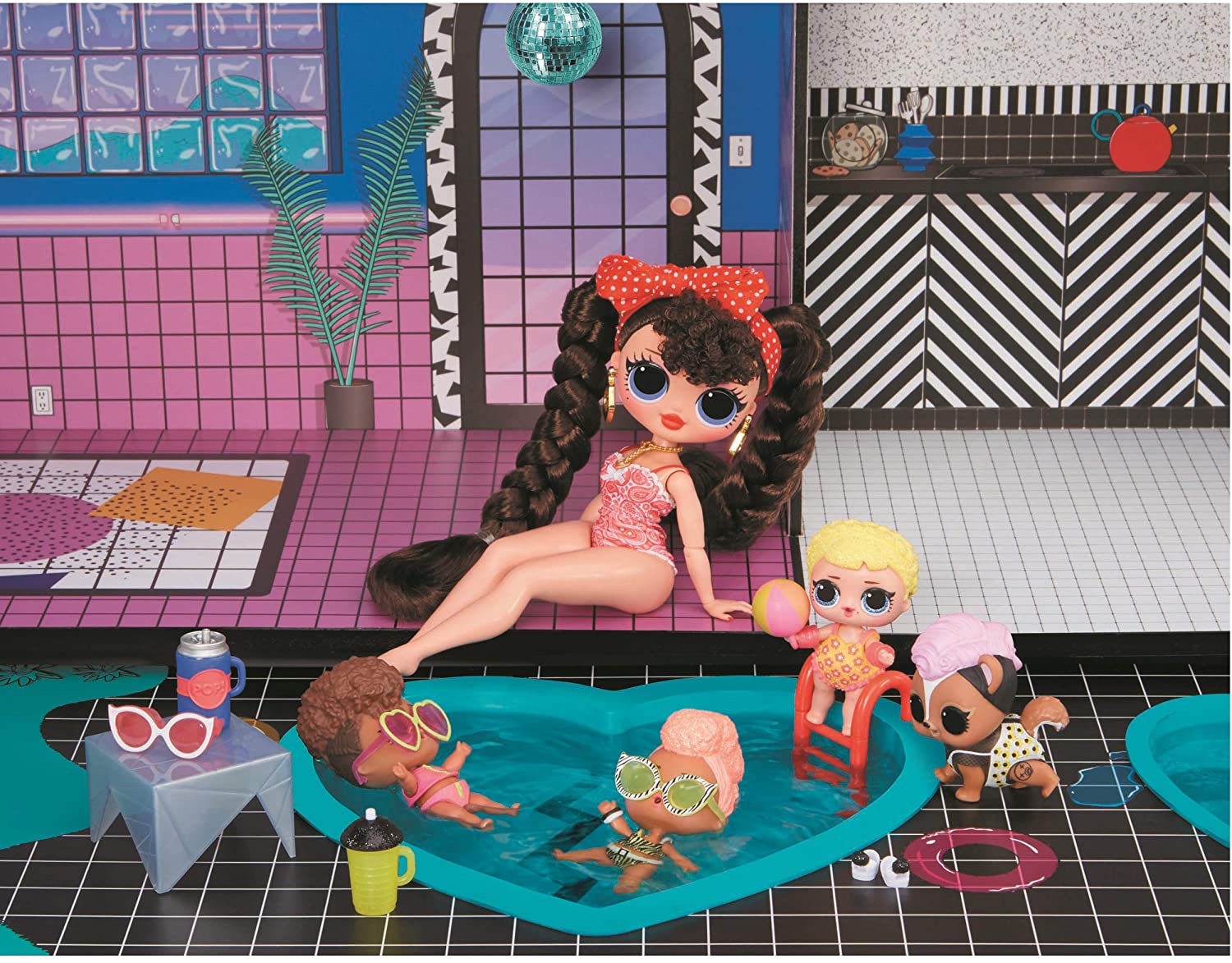 Задняя сторона дома представляет собой фон торгового центра, где куколки смогут купить себе одежду. Детали дома упакованы в розовые коробки, которые доставляются в картонном фургоне. Для сборки понадобится отвертка. В набор входит большая кукла OMG Uptown Girl из 2-й серии фэшн модниц высотой 25 см. Кукла с прошитыми волосами в стильном костюме и модных аксессуарах.