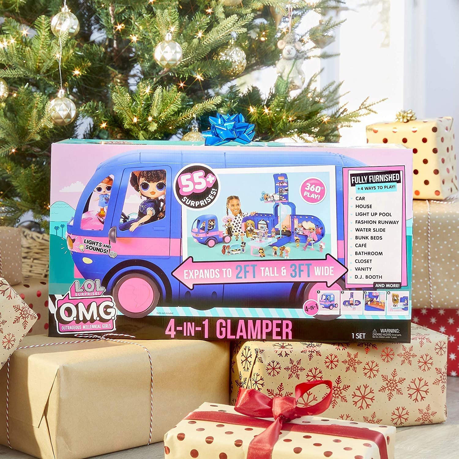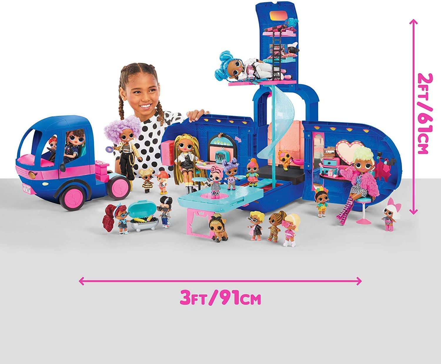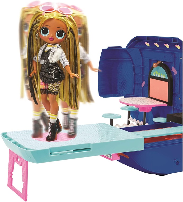 Набор «LOL Surprise Glamper» от MGA Entertainment в модном синем цвете – это стильный автобус, на котором куколки отправляются в крутое путешествие. Большой кемпер с прицепом похож на дом на колесах. Кабину можно отсоединить и использовать как обычный кукольный дом.