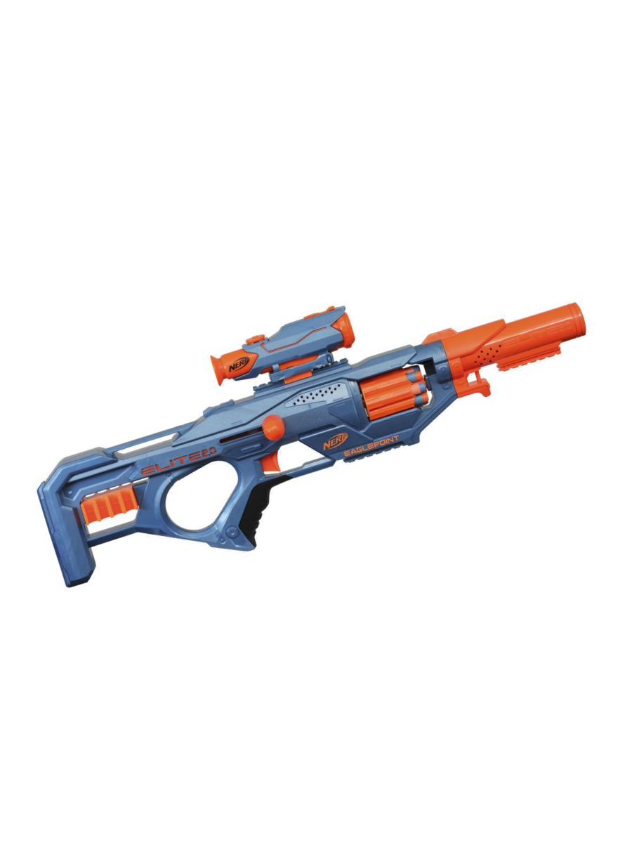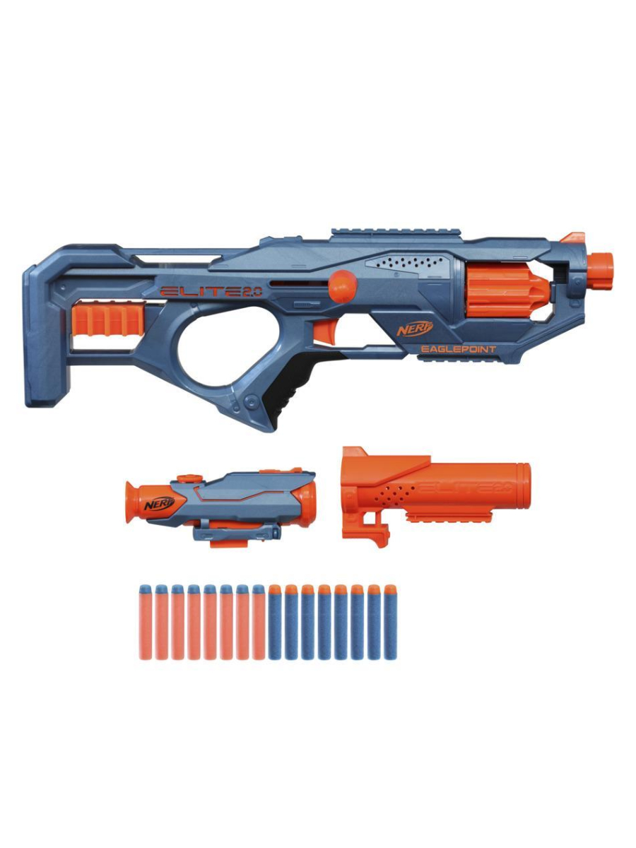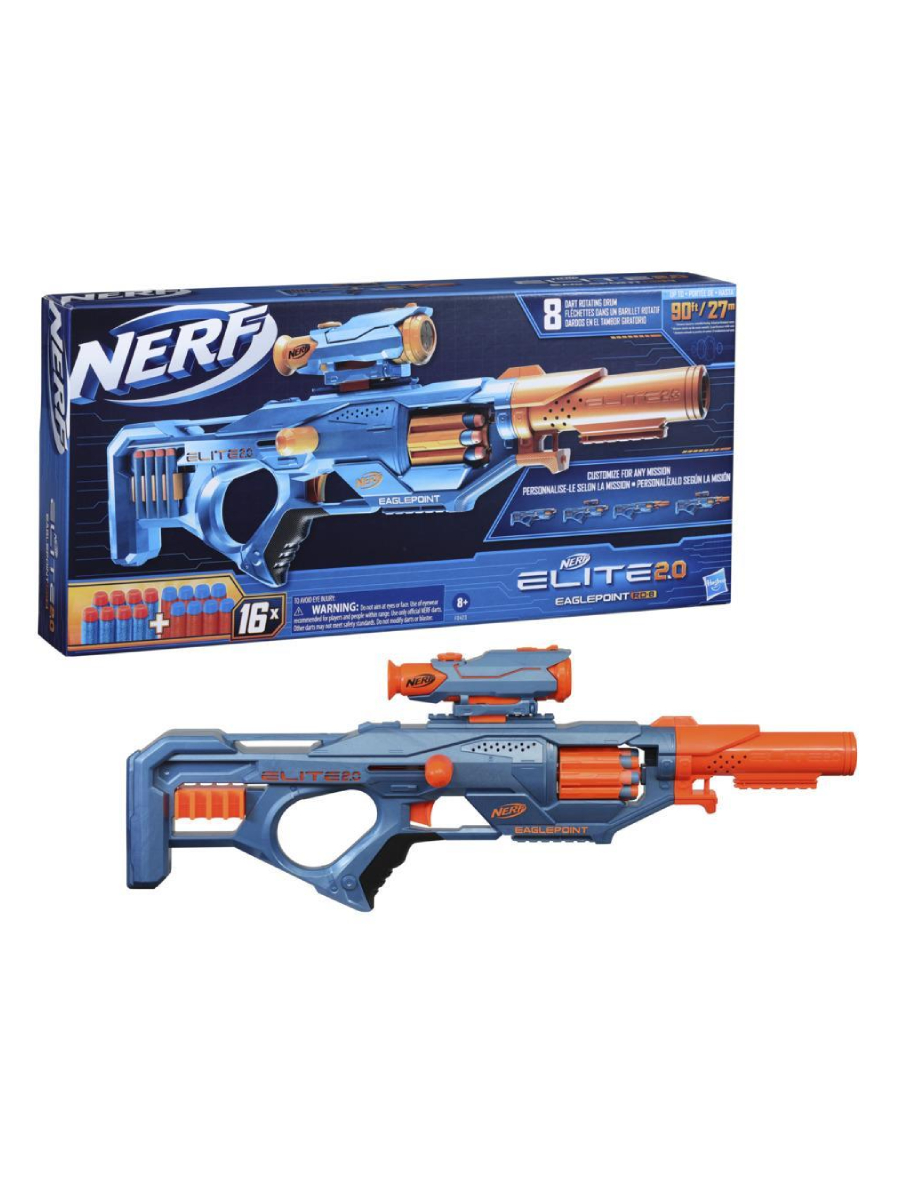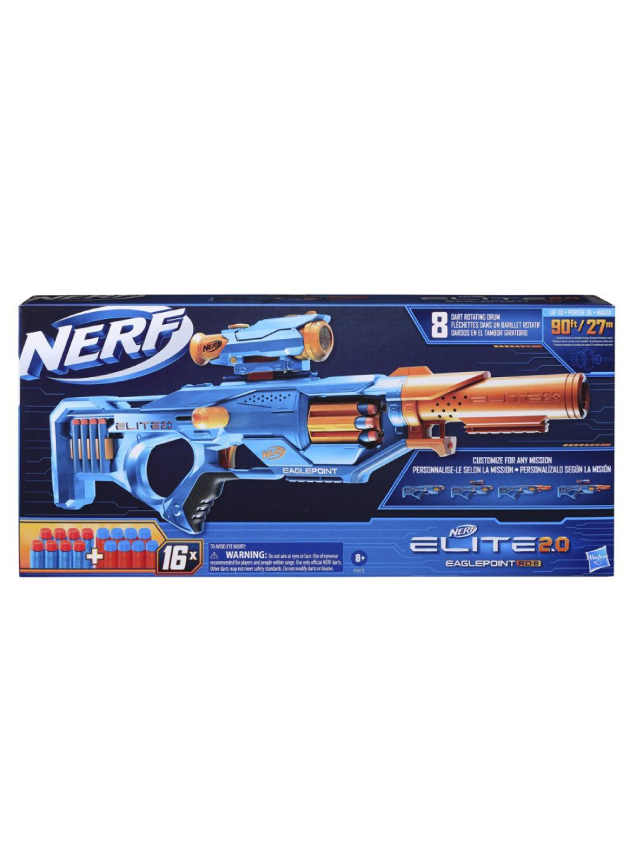 Настройте бластер Нерф Элит 2.0 Иглпоинт RD-8 для любой миссии! Этот бластер оснащен съемными стволом и прицелом, поэтому вы можете модифицировать его для каждой игры Nerf. Добавьте прицел и ствол, чтобы повысить точность выстрела. Теперь вы готовы ко всему! Вращающийся барабан бластера вмещает 8 стрел. Выпустите все стрелы из барабана, а затем перезарядите бластер, используя встроенное хранилище для стрел. В комплект с бластером входит 16 стрел Нерф Элит - 8 из них вы можете загрузить в барабан, а остальные оставить для перезарядки. Дальность выстрела может достигать 27 метров. Бластер имеет три тактические планки, к которым можно прикрепить дополнительные аксессуары Nerf. Во время игры надевайте защитные очки (аксессуары и очки продаются отдельно).