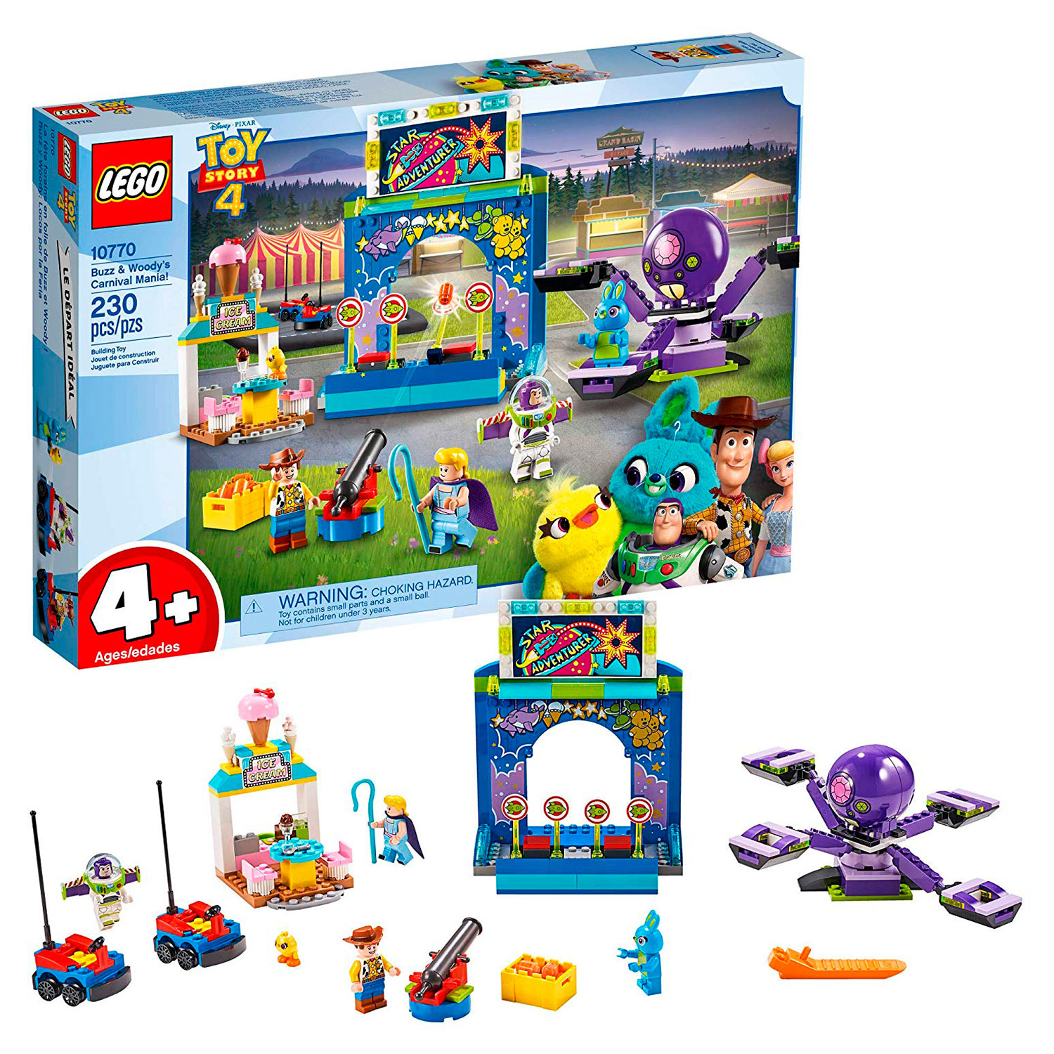 Джуниорс История игрушек-4 — LEGO, посвященное мультфильму «История игрушек-4». Персонажи приходят в парк аттракционов, где есть кафе-мороженое, тир и карусель в виде тарантула. По аттракциону Вуди и его друзья могут кататься на машинках, а в тире встретить новых персонажей.