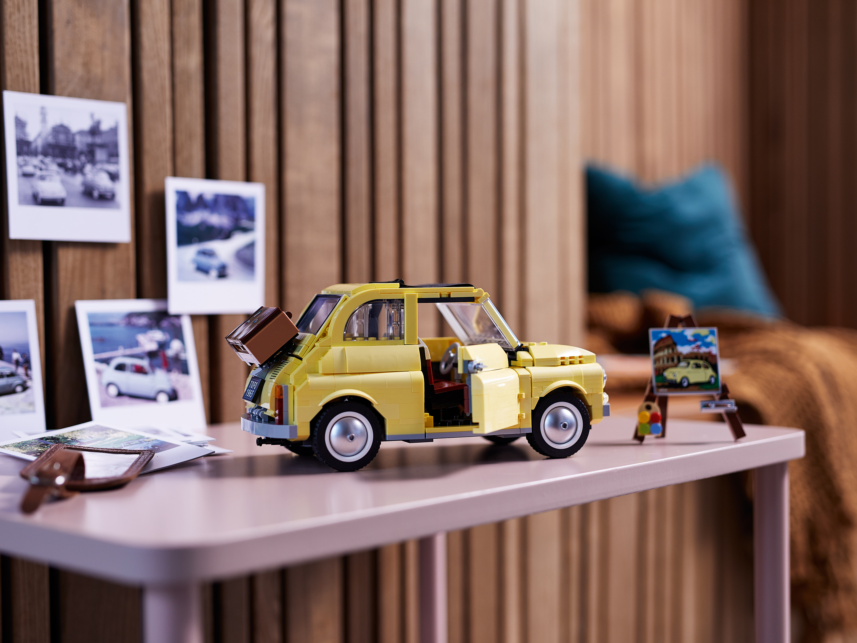 LEGO Creator Fiat 500 — модель легендарного итальянского автомобиля. У машины открываются двери и крыша. В багажнике вы найдете двигатель, а под капотом запасное колесо. Все как у ретро-автомобилей.